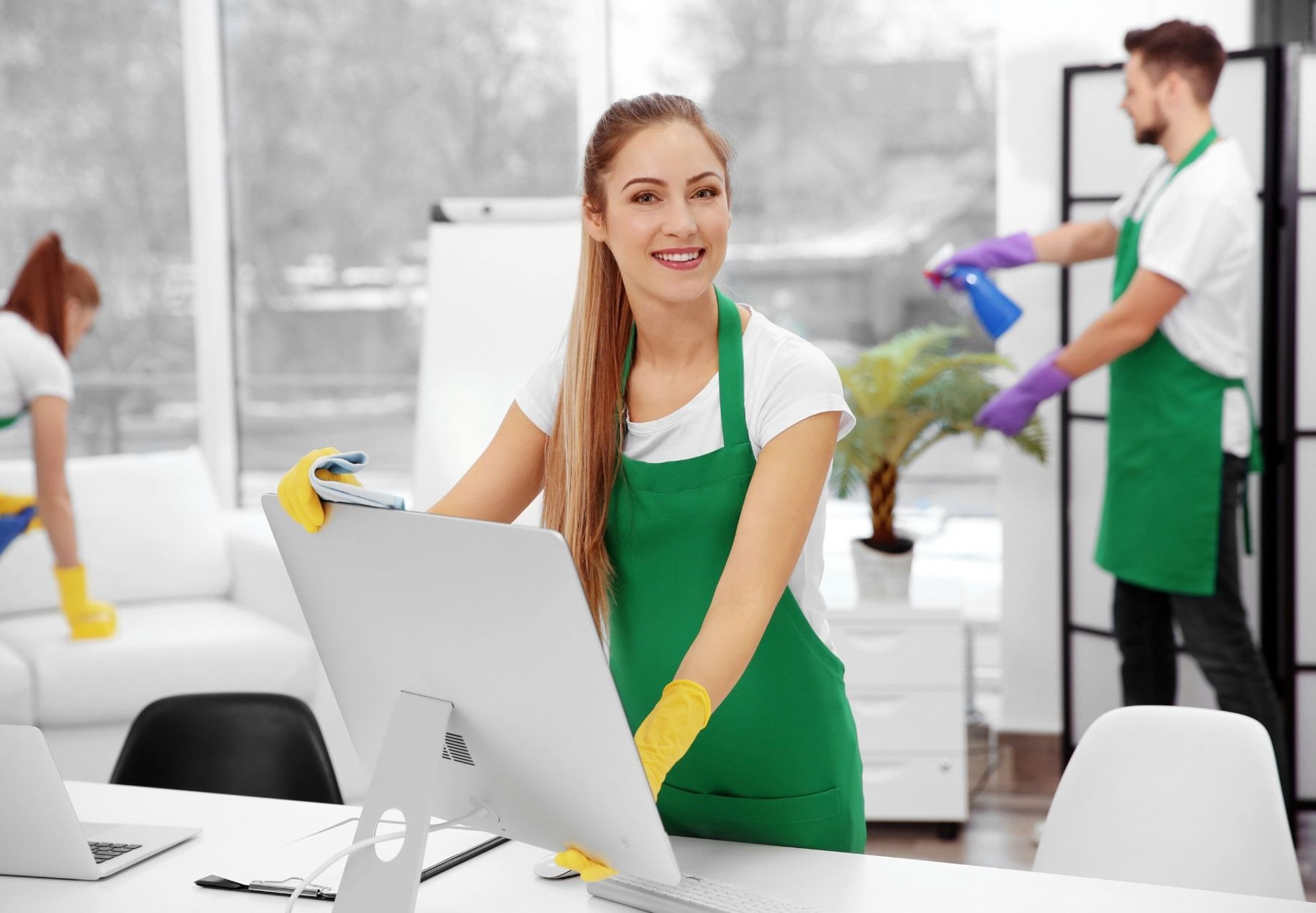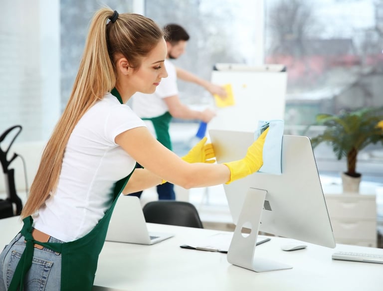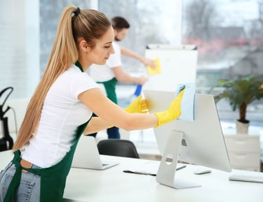 Routine cleaning of offices including desks, floors, trash removal, and sanitizing high-touch areas to maintain a professional workspace.