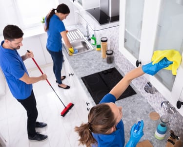 Cleaning classrooms, cafeterias, gyms, and shared learning spaces.