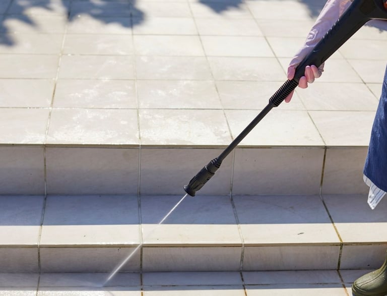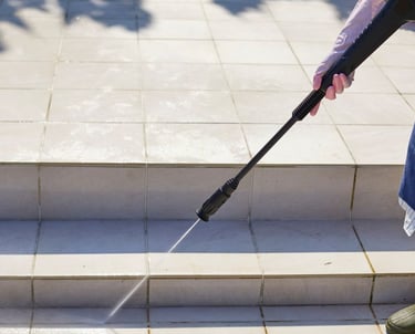 Exterior cleaning of sidewalks, parking lots, building facades, and concrete surfaces.