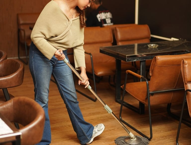 Cleaning of storefronts, display areas, fitting rooms, and floors to keep customer-facing spaces spotless.