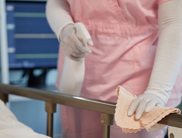 Specialized sanitation for clinics, hospitals, and healthcare environments following strict hygiene and infection-control standards.